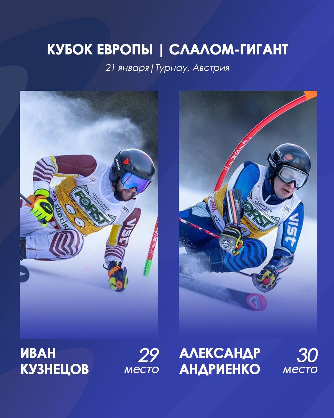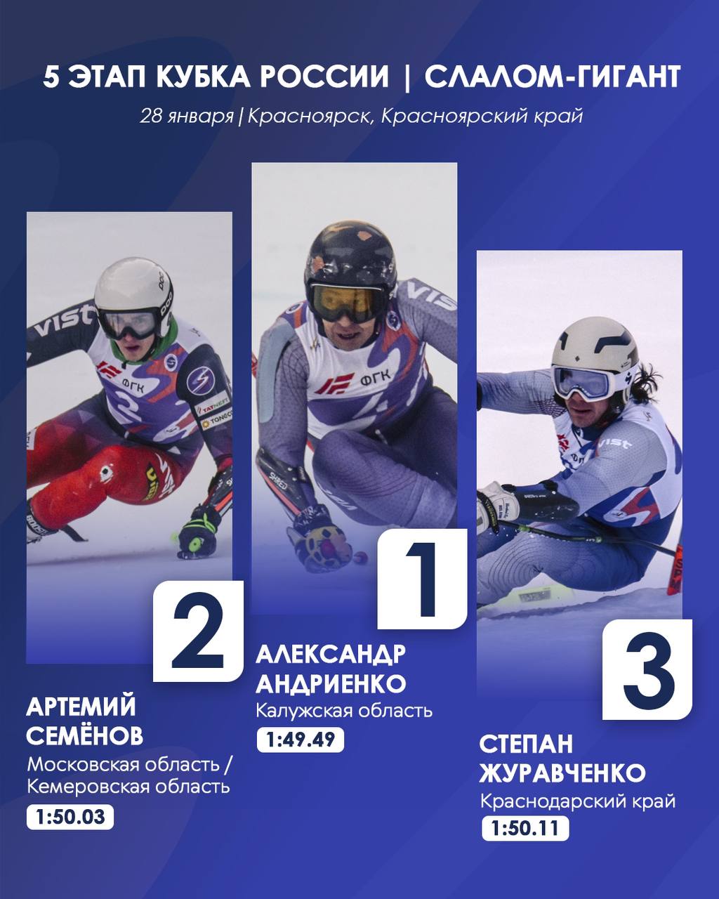 Неоднократный призер этапа Кубка Европы, бронзовый призер Зимней Универсиады, многократный чемпион России Александр Андриенко, призер Зимней Универсиады, многократный чемпион России Иван Кузнецов, а также призер Юношеского Чемпионата мира, победитель и призер Зимних Универсиад Семен Ефимов получили нейтральный статус FIS. С этого момента спортсмены могут принимать участие в Международных соревнования и отборе на Олимпийские игры. Напомним, что ранее нейтральный статус получила российская горнолыжница Юлия Плешкова.